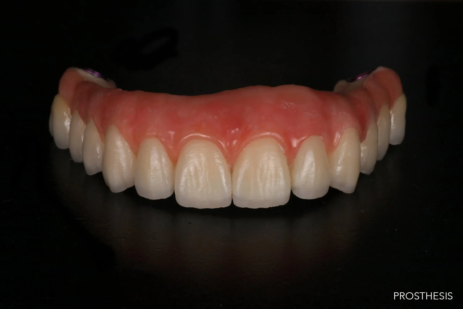 6 dental implants were placed immediately after his teeth were removed. A full arch ceramic prosthesis was secured to the implants and the patient’s ability to eat was restored.