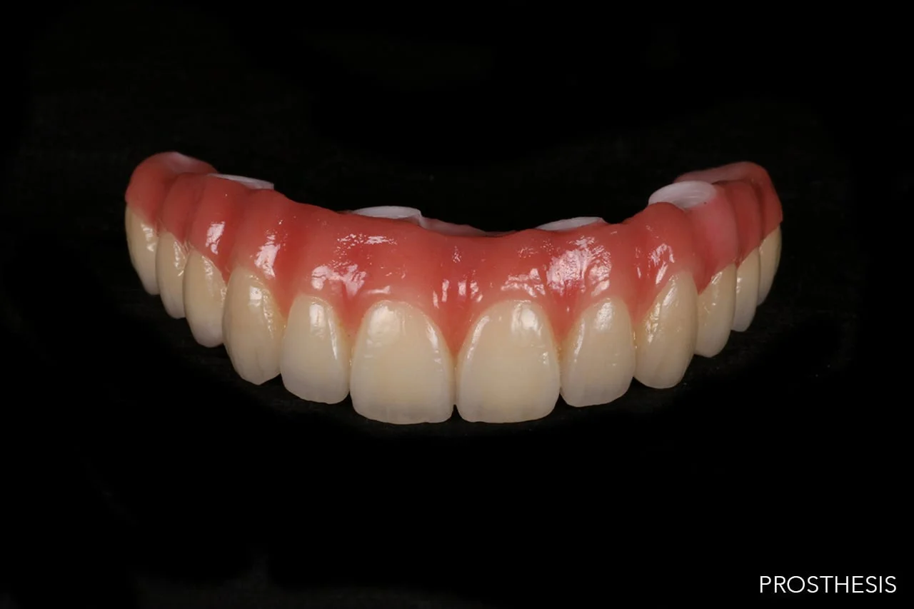 Implants were placed and an all-ceramic fixed prosthesis was placed to restore the patient’s function and esthetics.