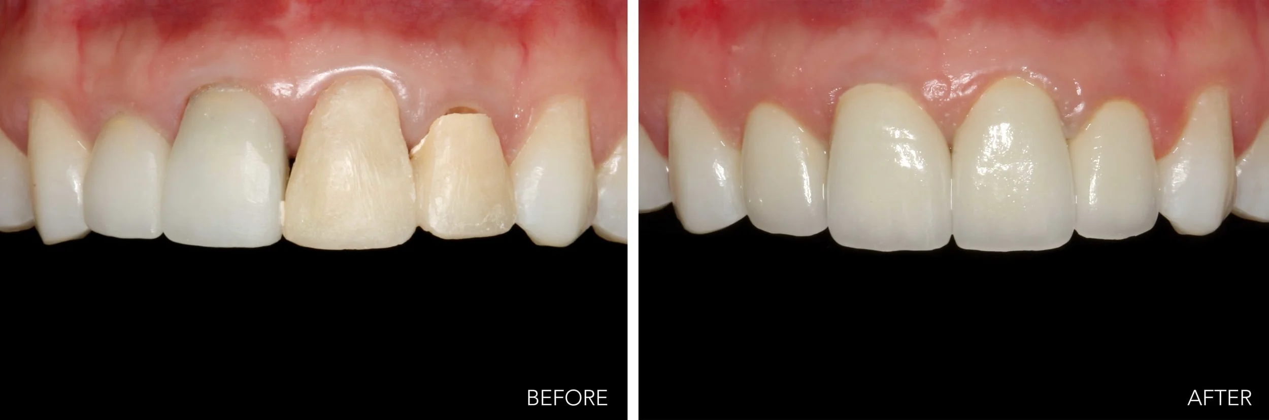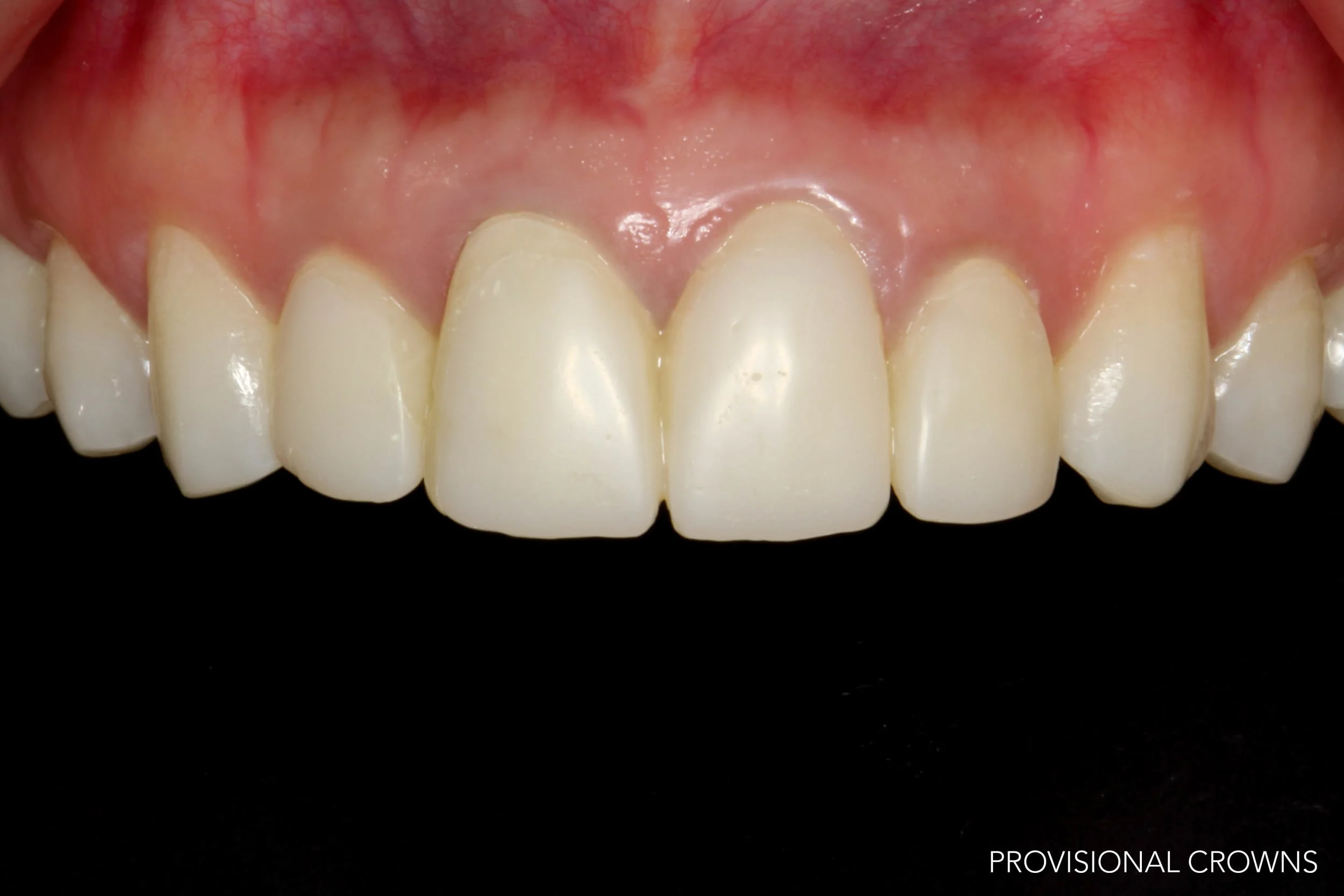 4 new provisional crowns were made for her immediately so she can feel confident with her smile while the new porcelain crowns were made.
